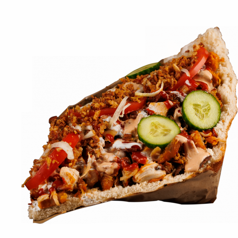 250g mięsa/ kapusta pekińska/ ogórek/ ogórek konserwowy/ pomidor/ cebula/ sos kebabowy